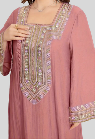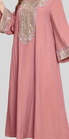 Pink Sequined Embroidered Abaya Dress