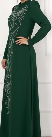 Dark Green Abaya Dress with Silver Sequins