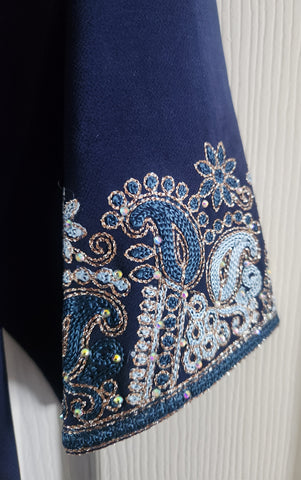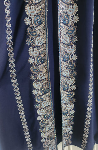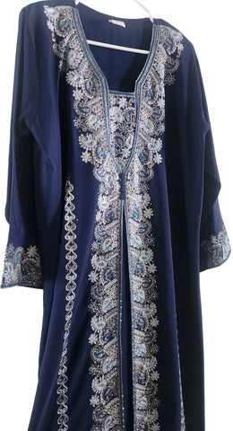 Blue Beaded Embellished Rhinestone Abaya / Eid Dress w/ Hijab